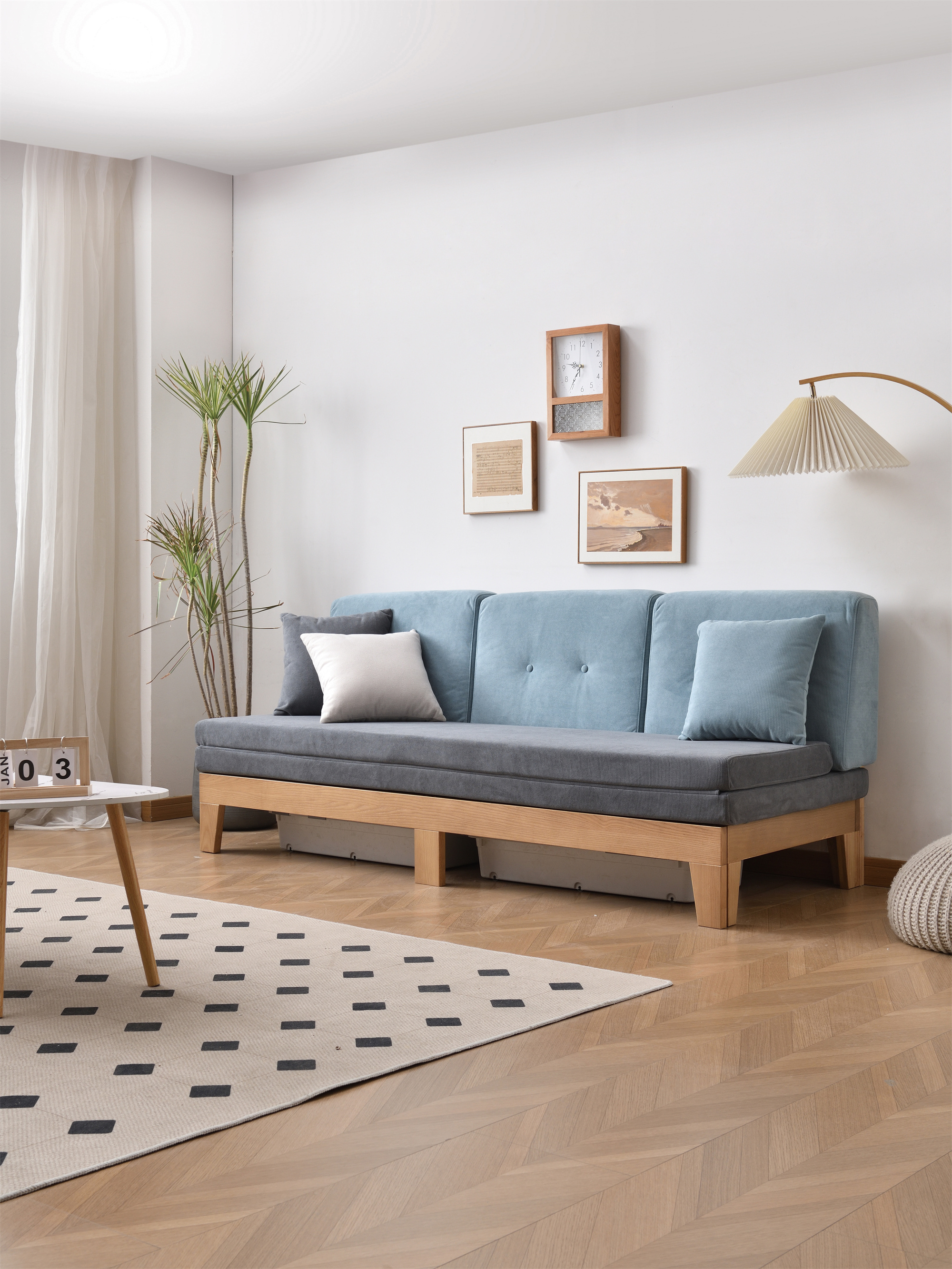 Ash Wood Solid Bed With Upholsterd Bed Headboard B3103
