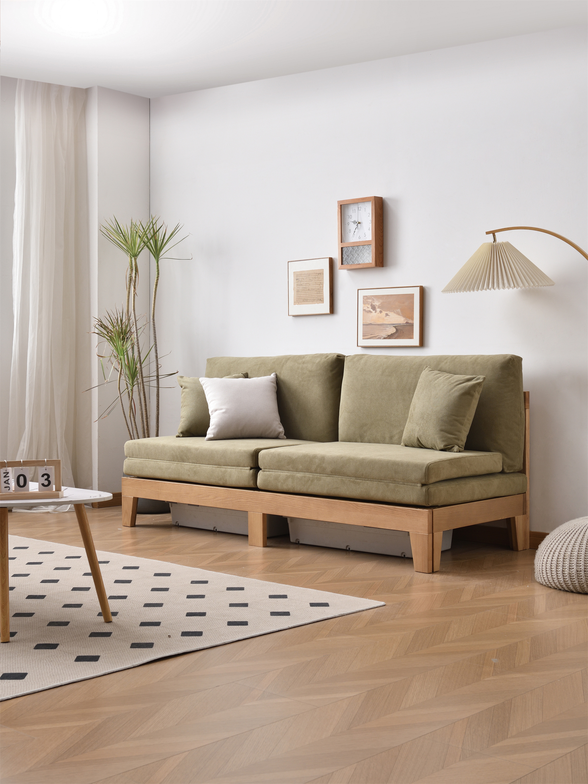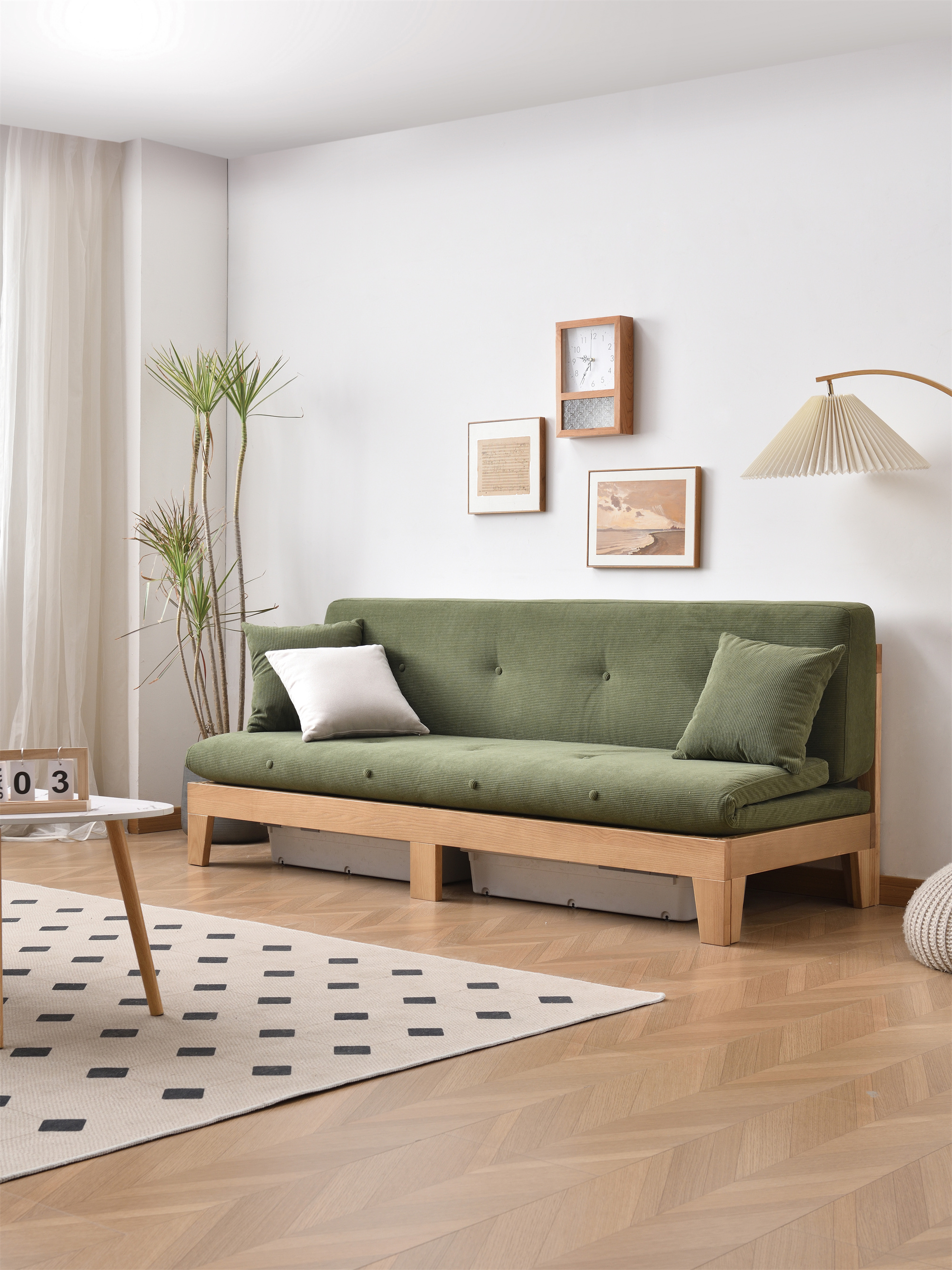 Ash Wood Solid Sofa Bed With Coushion BL5602